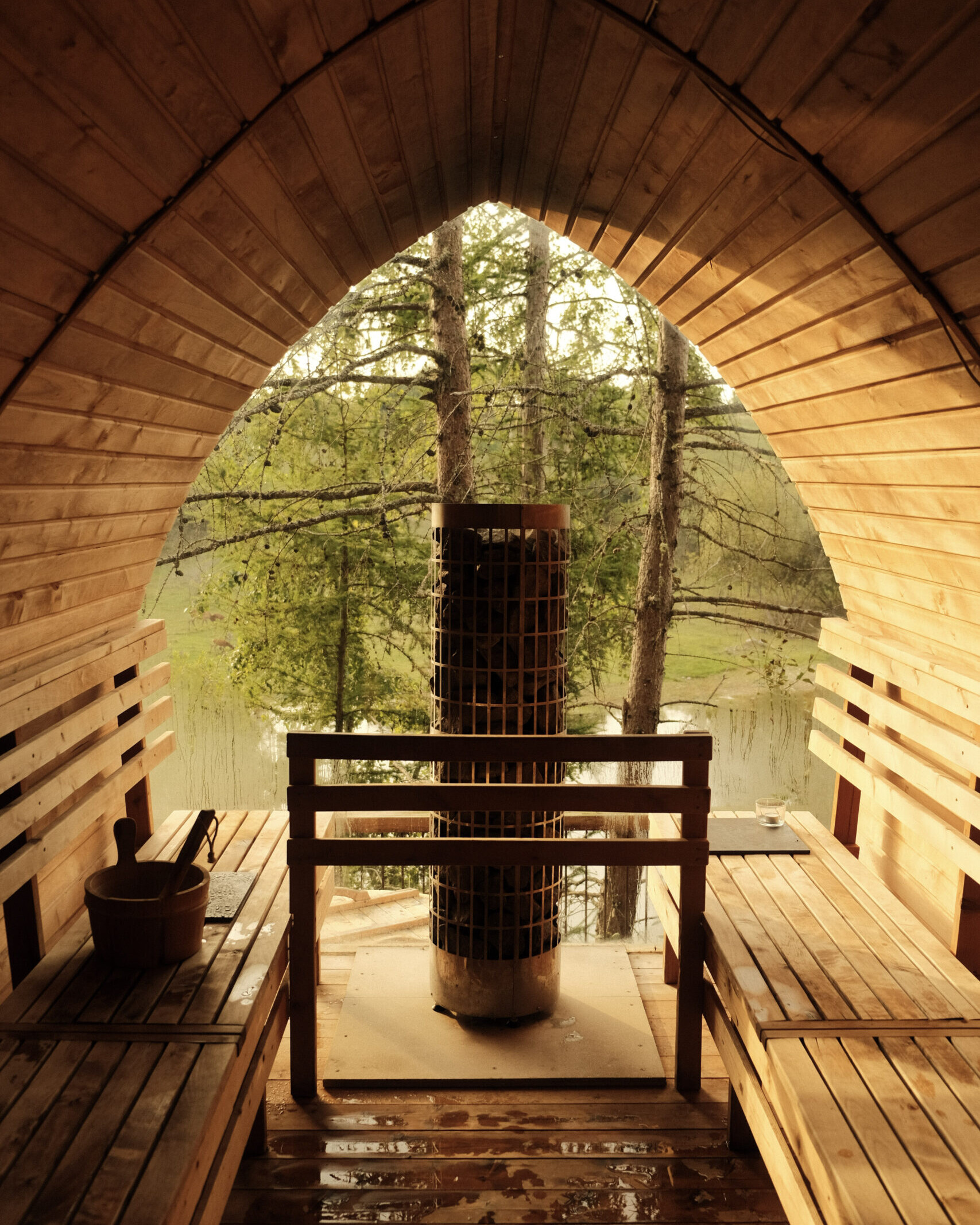 Make yourself comfortable in the sauna, reserved exclusively for overnight guests in the yurts. As you pour water over the hot stones, you can feel the stress melt away while gazing out across the serene lake — often visited by the forest’s deer.